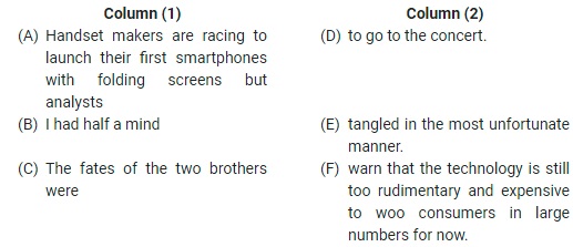 Sentence Connector- Directions: You are required to match statements from columns 1 and 2 and find which of the following pairs of statement make sense meaningfully and grammatically.