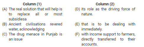 Directions: You are required to match statements from columns 1 and 2 and find which of the following pairs of statement make sense meaningfully and grammatically.