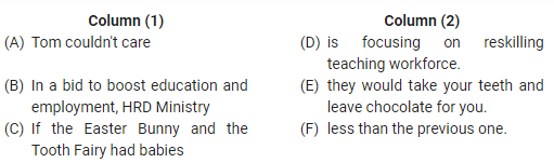 Directions: You are required to match statements from columns 1 and 2 and find which of the following pairs of statement make sense meaningfully and grammatically.