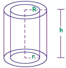 Hollow Cylinder (Hollow Right Circular Cylinder) Let the inner radius of the base, outer radius of the base and height of the hollow right circular cylinder be ‘r’, ‘R’ and ‘H’ respectively.