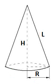 Cone Let the radius of the base, slant height and height of the cone be ‘R’, ‘L’ and ‘H’ respectively.