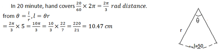 The minute hand of a watch is 5 cm. How far does the tip move in 20 minutes?
