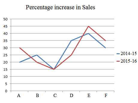 Let the Sales of D & E in year 2015 is x Then Sales of D in 2016 = x * 125/100 = 1.25x and that of E in 2016 = x * 145/100 = 1.45x So required % = 1.45x/1.25x * 100 = 116%