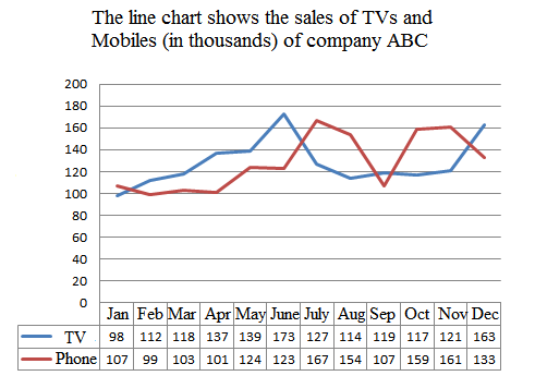 Solution: People who like TV = x, then who like Phones = 120/100 * x = 1.2x Total sales of TV in all months = 1538 thousand Total sales of Phones in all months = 1538 thousand Sales of TV/person = 1538/x and Sales of Phones/person = 1538/1.2x So Sales of Phones/person is minimum.