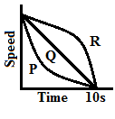 The graph below shows the speed of three cars P, Q & R changing with time.