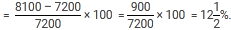 A person’s salary has increased from Rs. 7200 to Rs. 8100. What is the percentage increase in his salary?