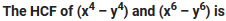 Let f(x) = (x4 – y4) = [(x2)2 – (y2)2] = (x2 – y2) (x2 + y2) = (x – y)(x + y)(x2 + y2) g(x) = (x6 – y6) = (x3)2 – (y3)2 = (x3 + y3) (x3 – y3) = (x + y) (x2 – xy + y2)(x – y) (x2 + xy + y2) = (x – y)(x + y)(x2 – xy + y2)(x2 + xy + y2) ∴ HCF of [f(x), g(x)] = (x – y)(x + y) = x2 – y2