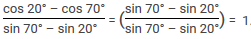 [? cos 20° = cos(90° – 70°) = sin 70° and similarly cos 70°= cos(90° – 20°) = sin 20°]