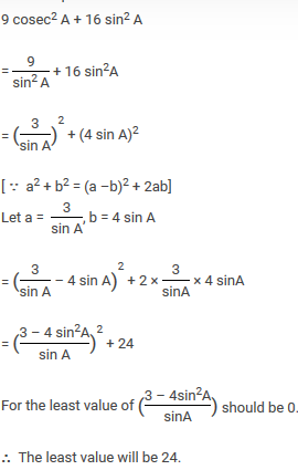Multiple Choice Questions on The least value of 9 cosec2 A 16 sin2 A is ........ for Mathematics - All Exams Preparation