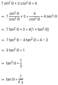 If Θ be an acute angle and 7 sin2 Θ + 3 cos2 Θ = 4, then the value of tan Θ is