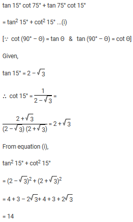 If tan 15 deg 2 ndash radic 3 the value of tan 15 deg cot 75 deg tan 75 deg cot 15 deg is ........