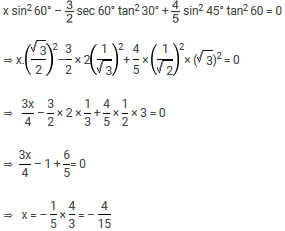 If x sin2 60° – 3/2 sec 60° tan2 30° + 4/5 sin2 45° tan2 60 = 0 then x is