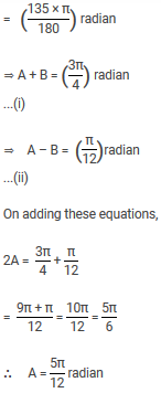 If the sum of two angles is 135 deg and their difference is pi 12 then the circular measure of the g...........