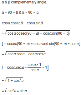 If α and β are complementary angles, then what is cosα cosecβ – cosα sinβ equal to?