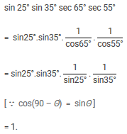 What is sin 25° sin 35° sec 65° sec 55° equal to?
