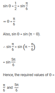 If sin Θ = 1/2 and 0 < Θ < 2π, find the values of Θ.
