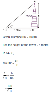 The angle of elevation of a tower from a distance 100 m from its foot is 30°. Height of the tower is :