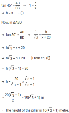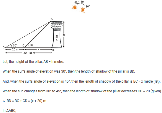 Multiple Choice Questions on If the angle of elevation of the sun changes from 30 deg to 45 deg the length of the shadow of a pil........... for Mathematics - All Exams Preparation