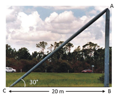 A telegraph post gets broken at a point against a storm and its top touches the ground at a distance...........