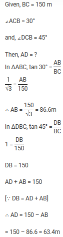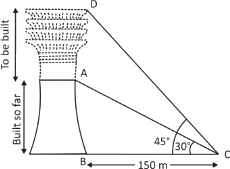 The angle of elevation of the top of an unfinished pillar at a point 150 m from its base is 30°. If the angle of elevation at the same point is to be 45°, then the pillar has to be raised to a height of how many metres?