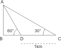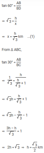 AB = Height of balloon = h km BD = x km, CD = 1 km From Δ ABD,