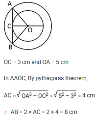 If two concentric circles are of radii 5 cm and 3 cm, then the length of the chord of the larger circle which touches the smaller circle is