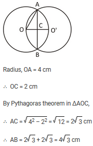 Multiple Choice Questions on Two equal circles of radius 4 cm intersect each other such that each passes through the centre of th........... for Mathematics - All Exams Preparation
