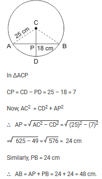 The diameter of a circle with centre at C is 50 cm CP is a radial segment of the circle AB is a chor...........