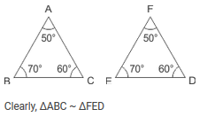 If in ΔABC and ΔDEF, ∠A = 50°, ∠B = 70°, ∠C = 60°, ∠D = 60°, ∠E = 70° and ∠F = 50°, which of the following is correct?