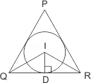 Given that, I is the incentre of the triangle PQR and ∠PRQ = 80° Now, ∠QIR = 110° and QI = 21 cm Let ID ⊥ QR ∠QPR = 2(110 – 90) = 40° (By the property of incircle) ∴ ∠PQR = 180 – ∠QPR – ∠PRQ = 180 – 40 – 80 = 60° ∠IQD = ∠PQR /2 = 60/2 = 30° Now, ID = IQ = sin30° = 20 x 1/2 = 21/2 cm ∴ Area of incircle = 22/7 x 21/2 x 21/2 = 346.5 cm2