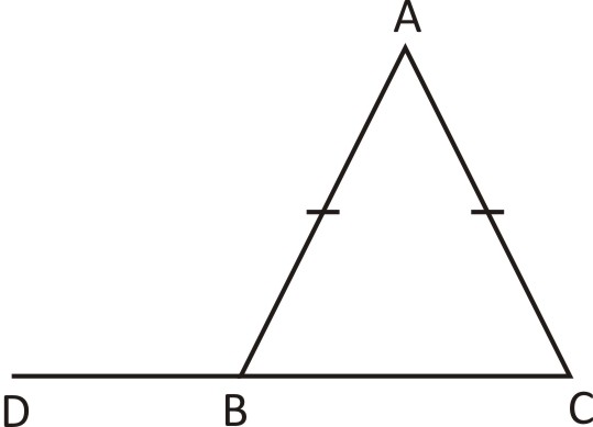AB = AC ∴ ∠ACB = ∠ABC ∠BAC = 40° (given) In ΔABC, we know that ∠ABC + ∠ACB + ∠BAC = 180° ∠ABC + ∠ABC + 40° = 180° [? ∠ABC = ∠ACB] 2∠ABC = 180° – 40° = 140° ∠ABC = 70° External angle, ∠ABD = 180° – 70° = 110°