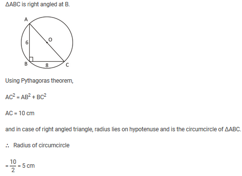 Let ABC is triangle right angled at B. If AB = 6 cm and BC = 8 cm, then what is the length of the circumradius of the ΔABC?
