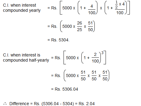 What is the difference between the compound interests on Rs. 5000 for 1 1/2 years at 4% per annum compounded yearly and half-yearly?