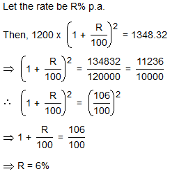At what rate of compound interest per annum will a sum of Rs. 1200 become Rs. 1348.32 in 2 years?
