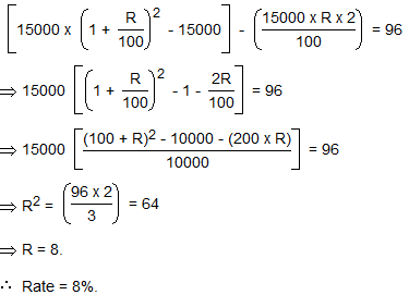 The difference between compound interest and simple interest on an amount of Rs. 15,000 for 2 years is Rs. 96. What is the rate of interest per annum?