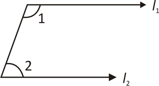 If the arms of one angle are respectively parallel to the arms of another angle, then the two angles are not equal but supplementary. If l1 || l2 ⇒ ∠1 + ∠2 = 180° (Supplementary)