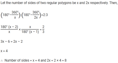 The ratio between the number of sides of two regular polygons is 1 : 2 and the ratio between their interior angles is 2 : 3. The number of sides of these polygons is respectively