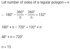 In a regular polygon if one of its internal angle is greater than the external angle by 132°, then the number of sides of the polygon is
