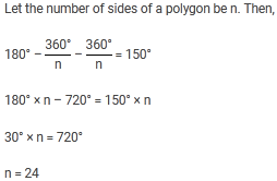 The difference between the exterior and interior angles at a vertex of a regular polygon is 150°. The number of sides of the polygon is