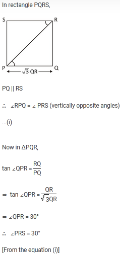If PQRS be a rectangle such PQ = √3 QR. Then, what is ∠PRS equal to?