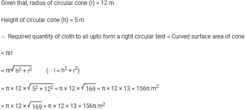What is the quantity of cloth required to roll up to form a right circular tent whose base is of radius 12 m and height 5 cm ?