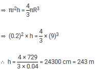 Given that, diameter of wire = 0.4 cm ∴ radius of wire (r) = 0.2 cm And, radius of sphere (R) = 9 cm Let length of wire = h Note : When an object is changed and given a different shape, the volumes of both the objects (of two different shapes) remain equal. ∴ Volume of wire = Volume of sphere