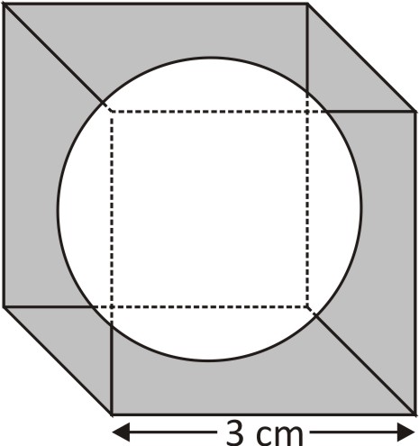 From figure, it is clear that Diameter of sphere = Side of the cube = 3 cm ∴ radius of sphere (r) = 3/2 = 1.5 cm Volume of the largest sphere = 4/3πr3 4/3π(1.5)3 = 4.5π cm3