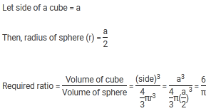 A sphere is inscribed in a cubical box such that the sphere is tangent to all six faces of the box. What is the ratio of the volume of the cubical box to the volume of sphere ?