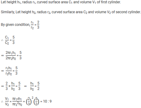 The radii of two cylinders are in ratio 2 3 and their curved surface areas are in the ratio 5 3 What...........