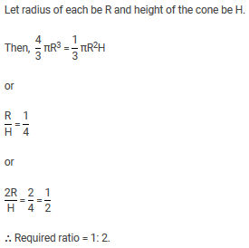 A cone and a sphere have equal radii and equal volumes. Find the ratio of the diameter of the sphere to the height of the cone.