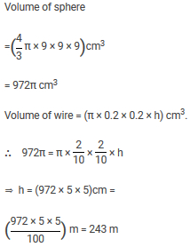 A iron sphere of diameter 18 cm is drawn into a wire of diameter 4 mm. Find the length of the wire.