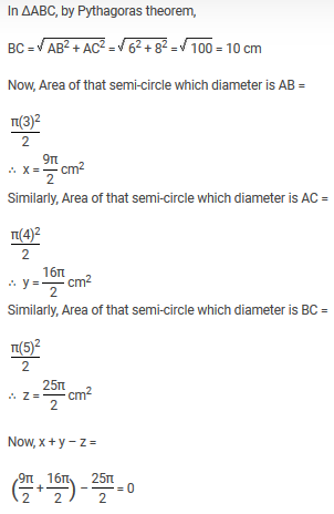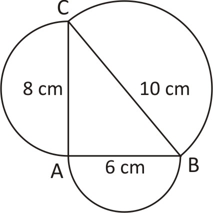 Multiple Choice Questions on ABC is a triangle right angled at A AB 6 cm and AC 8 cm Semi circles drawn outside the triangle on A........... for Mathematics - All Exams Preparation