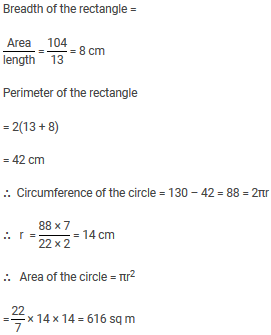 The sum of the circumference of a circle and the perimeter of a rectangle is 130 cm. The area of the rectangle is 104 sq cm and the length of the rectangle is 13 cm. What is the area of the circle?