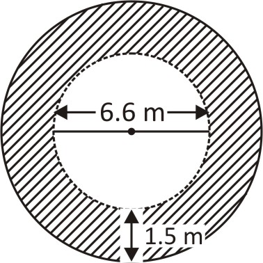 A circular water fountain 6.6 m in diameter is surrounded by a path of width 1.5 m. The area of this path (in sq m) is